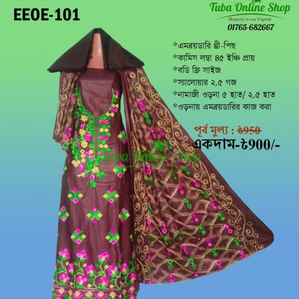এমব্রয়ডারি সুতি থ্রী-পিস