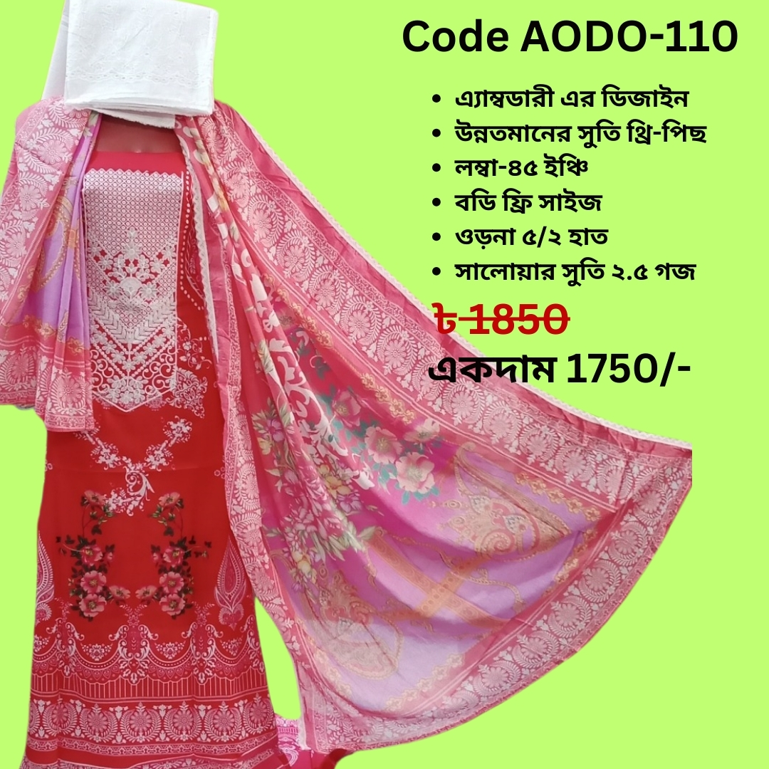 আড়ি এমব্রয়ডারি প্রিমিয়াম সুতি থ্রী-পিস
