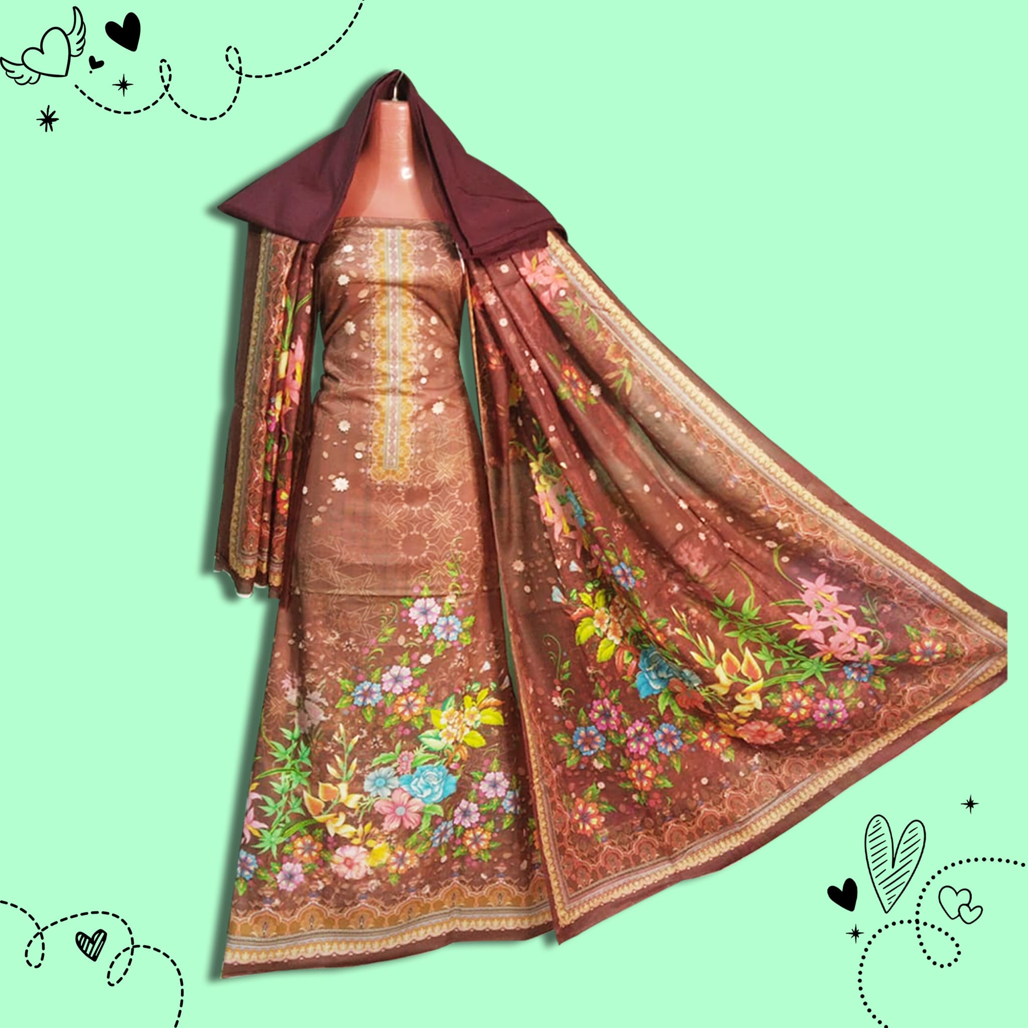 • প্যাকেজ অন্তর্ভুক্ত: ১টি স্যালোয়ার, কামিজ এবং ওড়না
