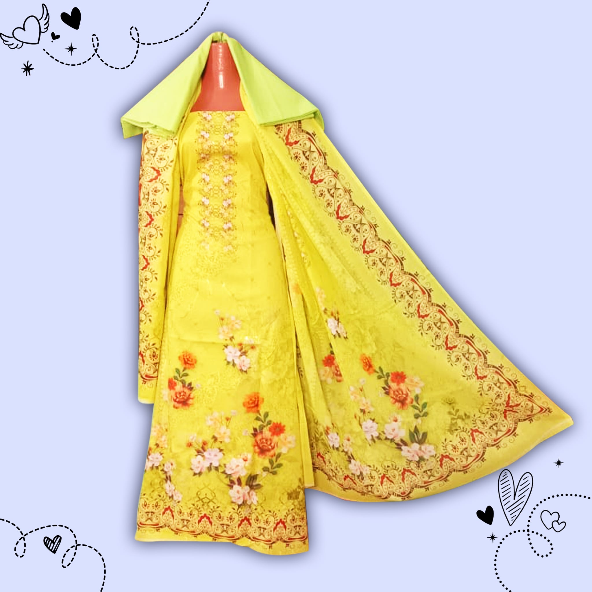 • প্যাকেজ অন্তর্ভুক্ত: ১টি স্যালোয়ার, কামিজ এবং ওড়না